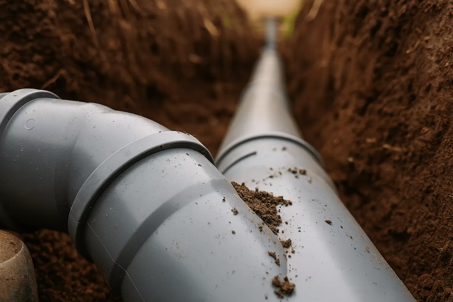 - Roboty ziemne: wykop, podsypka, ułożenie rury.